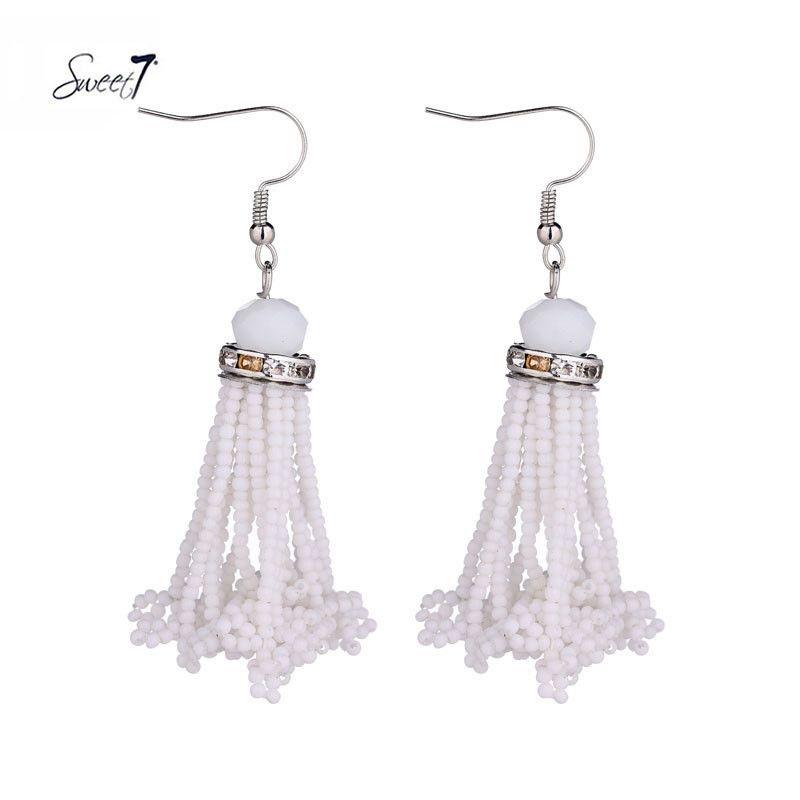 Deze oorhangers van 7 cm lang zijn een waar meesterwerk van verfijning. Gemaakt in een stralende witte tint, symboliseren ze zuiverheid en tijdloze schoonheid. Verfijnde strengen met witte kralen vangen elk beetje licht en dansen zachtjes bij elke beweging, voor een betoverend en mysterieus effect dat nooit onopgemerkt blijft.